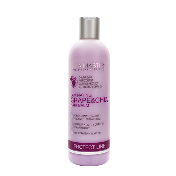 Spa Master Laminating grape & chia pH 3,5 je laminovací protect balzám na vlasy s hroznovým a chia extraktem. Byl vyvinut pro ochranu barvy barvených vlasů a pro ochranu přirozených vlasů před spálením, teplotou, chemickými a fyzikálními vlivy díky gsp-tcomplex a chiaprotect. Patentovaný systém Silplex pomáhá odstraňovat poškození, lámání a poréznost vlasů. Poskytuje antioxidační účinky a vytváří ochranný plášť vlasů. Složení balzámu zahrnuje kokosový olej, ricinový olej, olej z pšeničných klíčků a mléčné proteiny, které usnadňují vyplnění a obnovení pružnosti a hustoty vlasů a vytvářejí nádherný lesk. Balzám je vhodný pro každodenní použití. Použití: Po umytí šamponem naneste balzám a rozetřete po celé délce vlasů na 3-5 minut. Opláchněte vlažnou vodou. Naneste zbývající produkty vlasové péče a pokračujte ve stylingu.